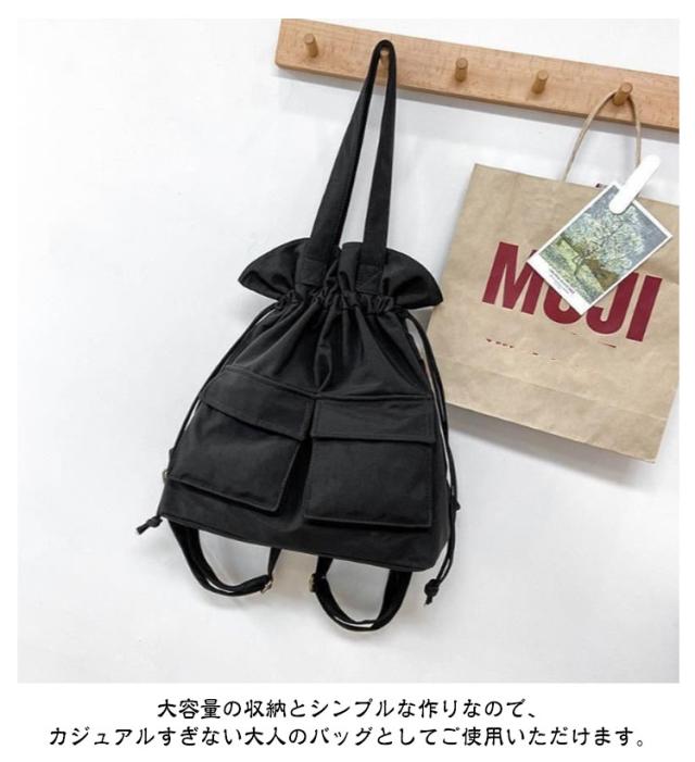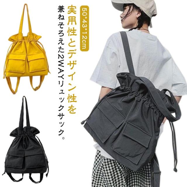 | 実用性とデザイン性を兼ねそろえた2WAYリュックサック。 リュックとして背負うだけでなく、トートバッグとして。スタイルや好みに合わて持ち方を変えられます。 入り口が大きく開くため、中の荷物の出し入れがスムーズ。 紐を絞れば巾着の様にシルエットが変えられるデザイン性の高さもポイント。 大容量の収納とシンプルな作りなので、カジュアルすぎない大人のバッグとしてご使用いただけます。 男女問わず使えるシンプルなデザイン。プライベートはもちろんビジネスシーンにも最適。 | |