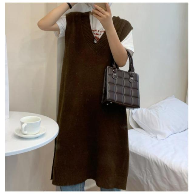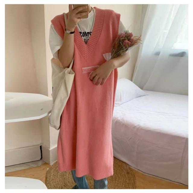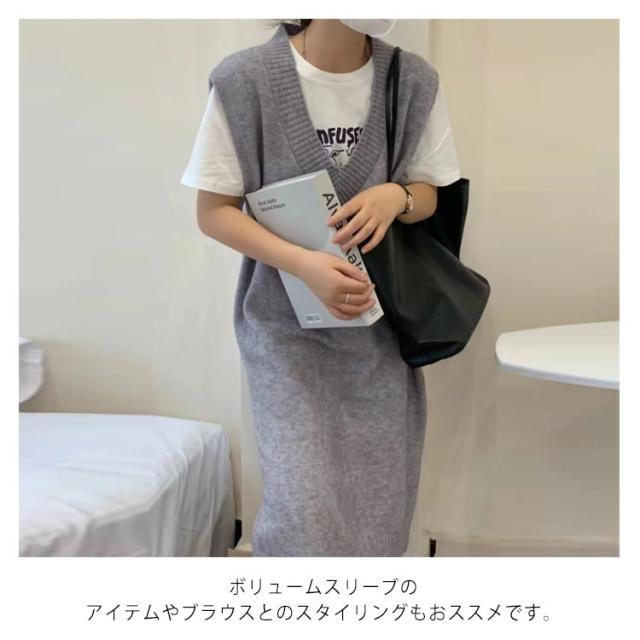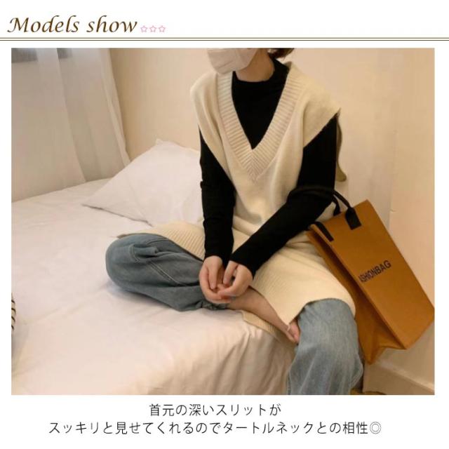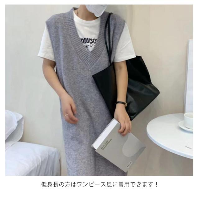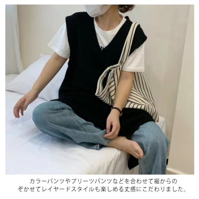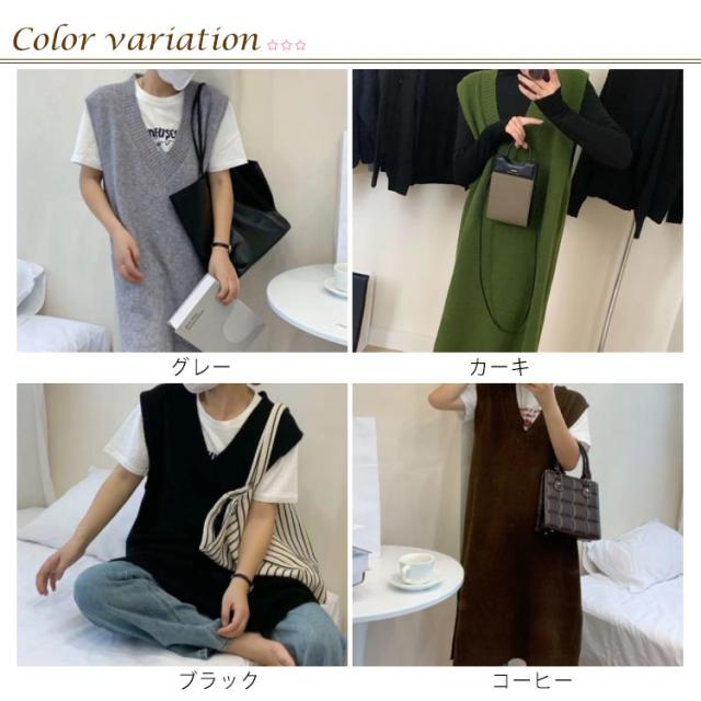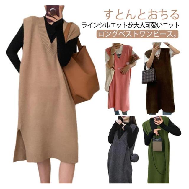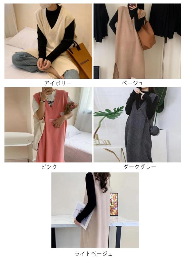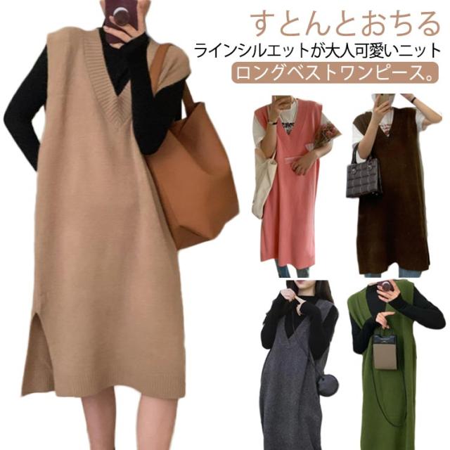 ニットベスト ロング Vネック レディース ロングニットベスト 膝下丈 サイドスリット レイヤード 重ね着 ニット プルオーバー セーター ノースリーブ ニットワンピース 秋冬 ニット トップス 秋服 秋物 大人 カジュアル きれいめ 【送料無料】