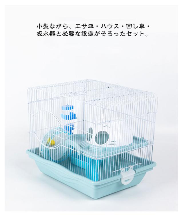 ハムスターケージ 飼育セット ハムスターハウス 回し車 エサ皿 給水ボウル 広い 組み立て式 お掃除 お手入れしやすい