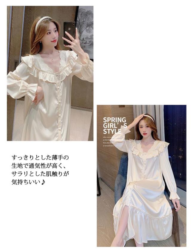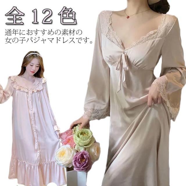ルームウェア レディース パジャマ 長袖 ルームワンピース 可愛い 秋 春 ワンピース ロング丈 ルーム お姫様 産前 産後 授乳 寝巻き ドレス プリンセス 入院 母の日 ロング丈 ナイトウェア ゆったり 無地 妊婦 マタニティ用 送料無料