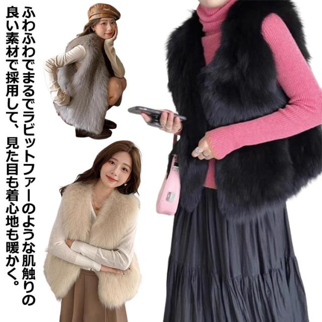 フェイクファー ベスト ジレ ショート丈 ノーカラージャケット レディースファーベスト レイヤード 韓国 アウター ファージャケット ふわふわ もこもこ アウター 高級 パーティー カジュアル おしゃれ 上着 暖かい 防寒 毛皮ベスト