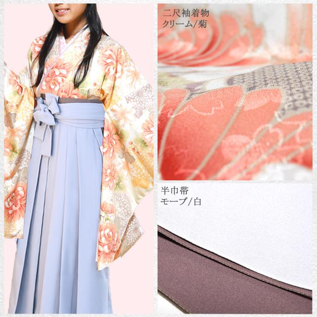 二尺袖,袴,半巾帯,二尺袖長襦袢半衿付,無地草履,足袋,腰紐4本,伊達締め2本,帯板,衿芯の15点フルセット