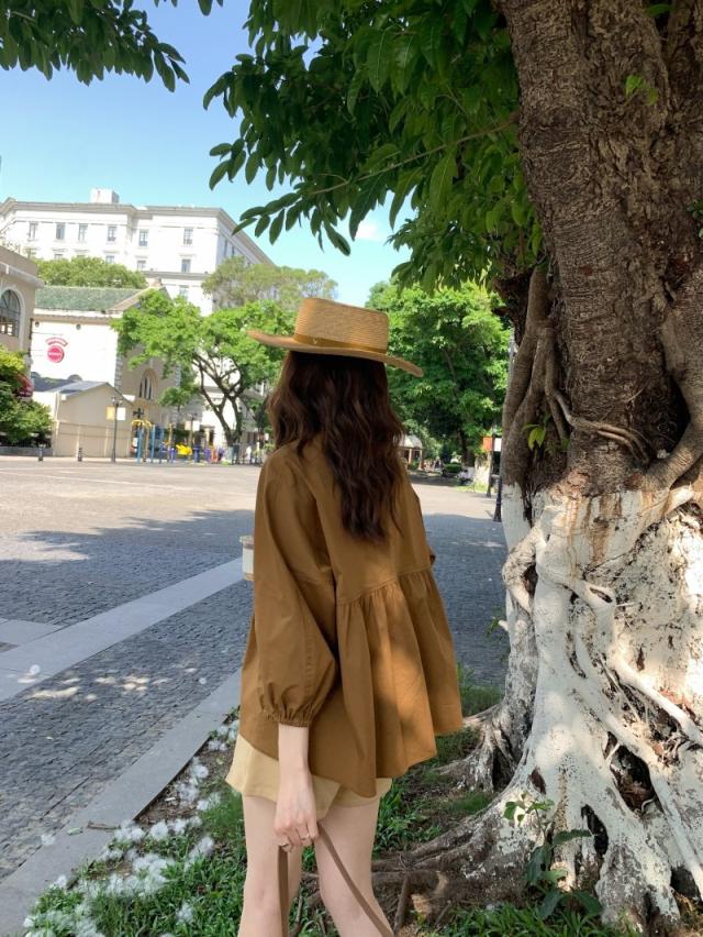 チュニック レディース ブラウス シャツ パフスリーブ ペプラム トップス 体型カバー オフィス カジュアル おしゃれ 春 秋