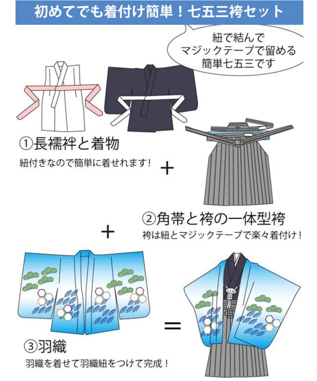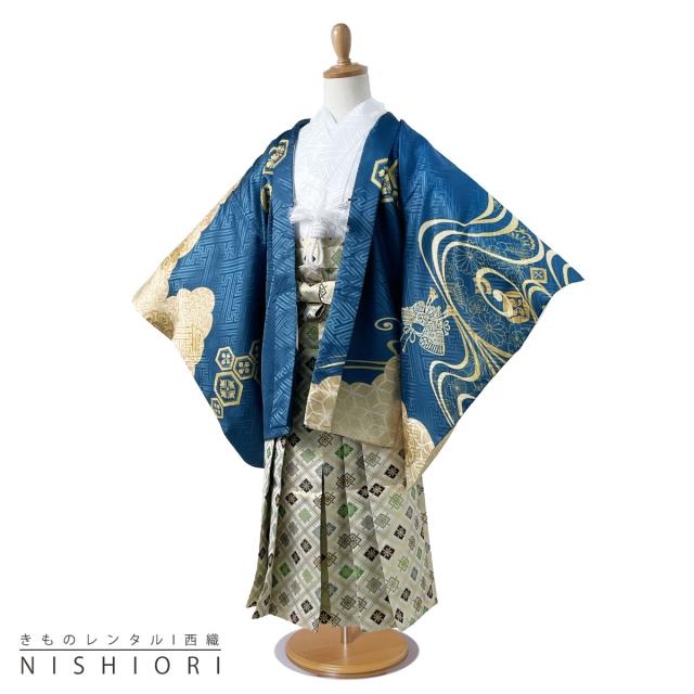 七五三 五歳 男児 着物 レンタル 羽織袴 カンタン着付け アンサンブル 5歳 五歳 貸衣装 子供 男児 男の子 青 金刺繍