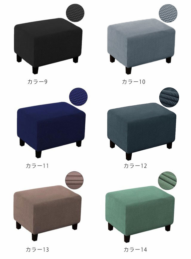 | カラーバリエーション、ぴったりフィットなオットマンカバー。 生地は良く伸びる超ストレッチ生地を採用しているので、ぐーんと伸びてピタッとフィット。 カバーをしかっりに固定でき、ズレにくく、使い便利です! 汚れが気になったら手軽にお洗濯ができるのも嬉しいポイント。 全14色からお選びいただけ、お手軽に雰囲気をチェンジ! | |