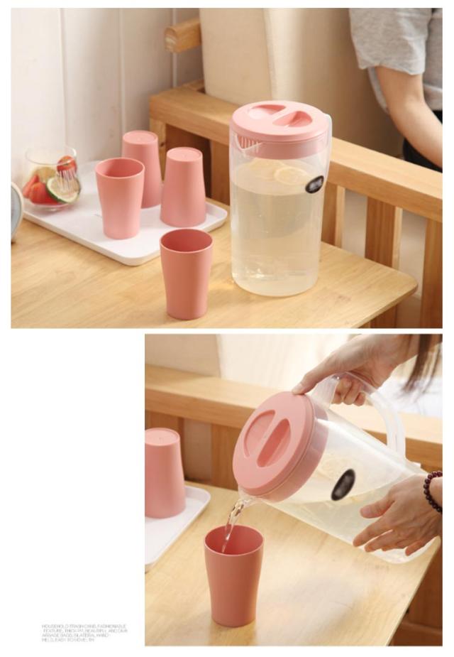 ピッチャー 冷水筒 2.2L 2.6L 2200ml 2600ml 5点組 冷水筒*1+コップ4 耐熱 麦茶ポット 冷水ポット 熱湯 麦茶 ポット 冷茶 プラスチック 食品級PP ドリンクピッチャー 送料無料
