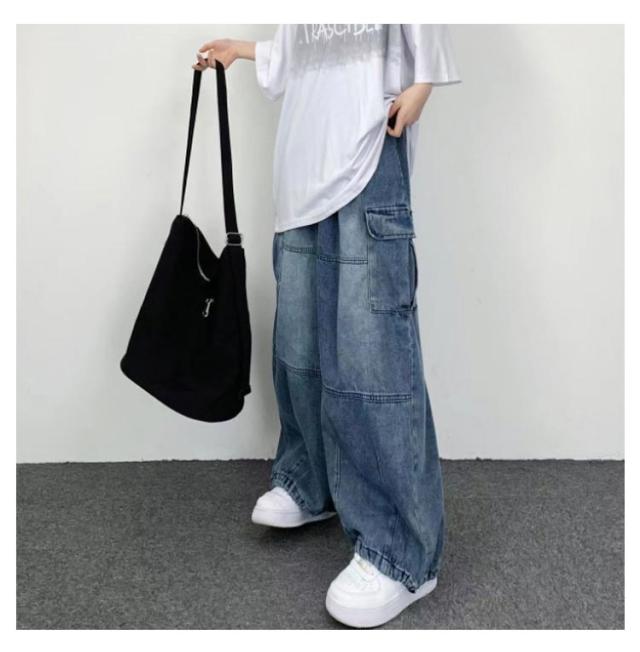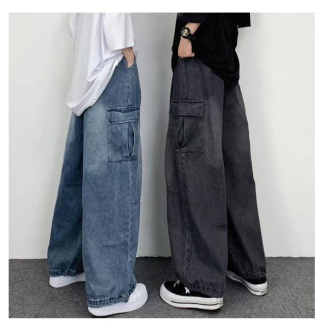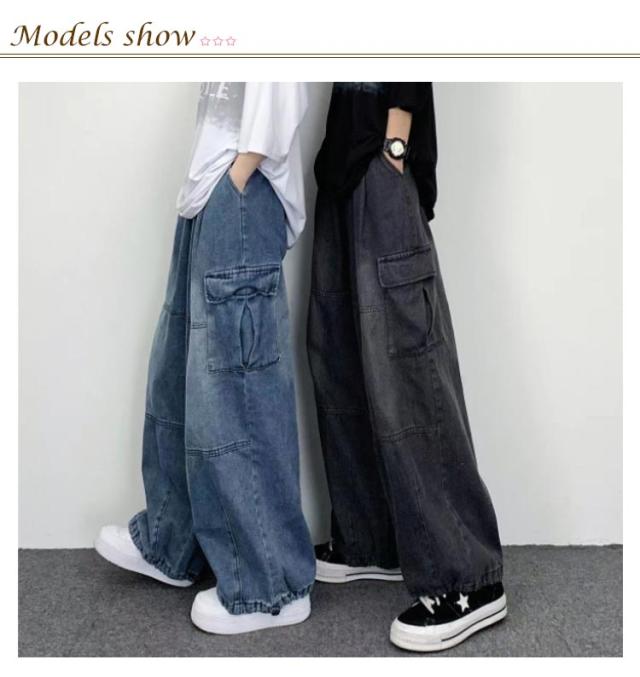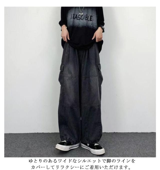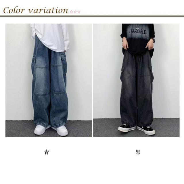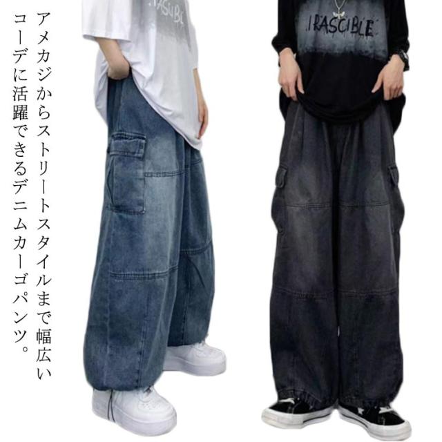デニムパンツ メンズ ワイドパンツ カーゴパンツ ゆったり デニムカーゴジーンズ ジーパン 大きいサイズ ワークパンツ ロングパンツ ストリート アメカジ おしゃれ カジュアル ダンス衣装 ヒップホップ S M L XL 2XL 3XL