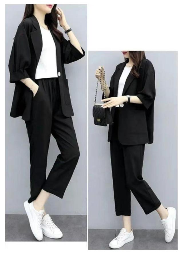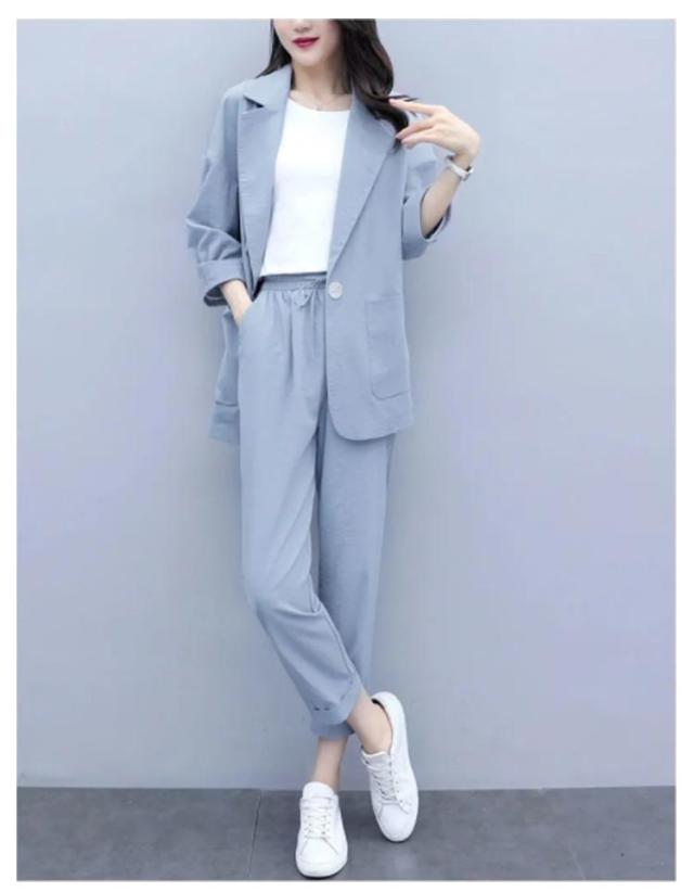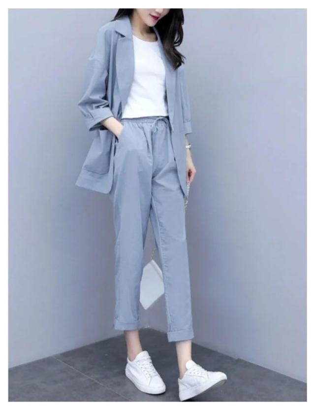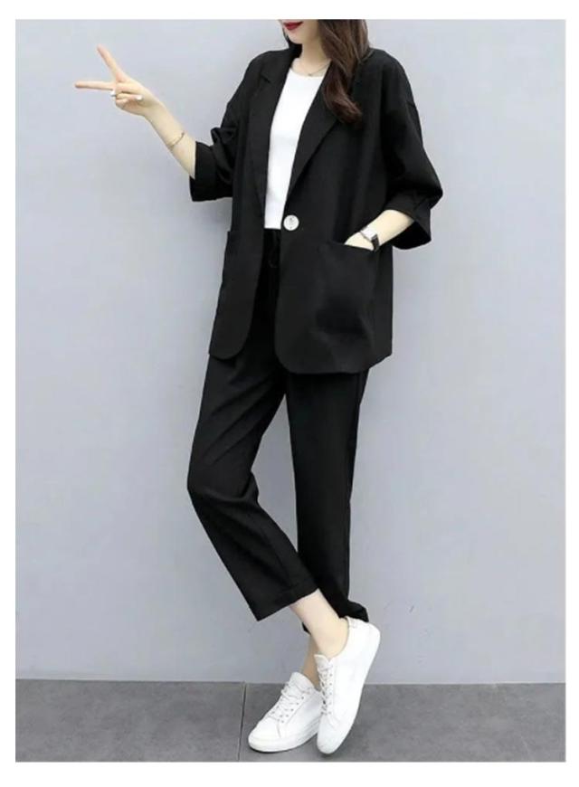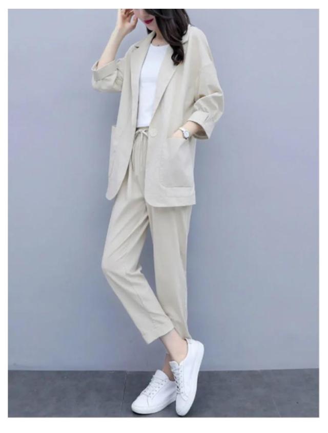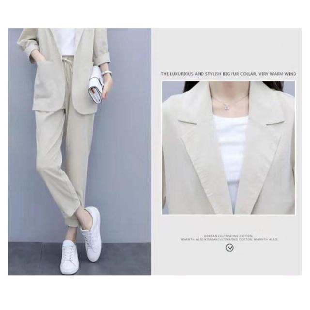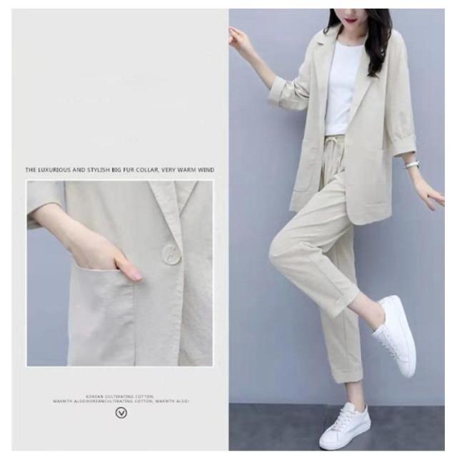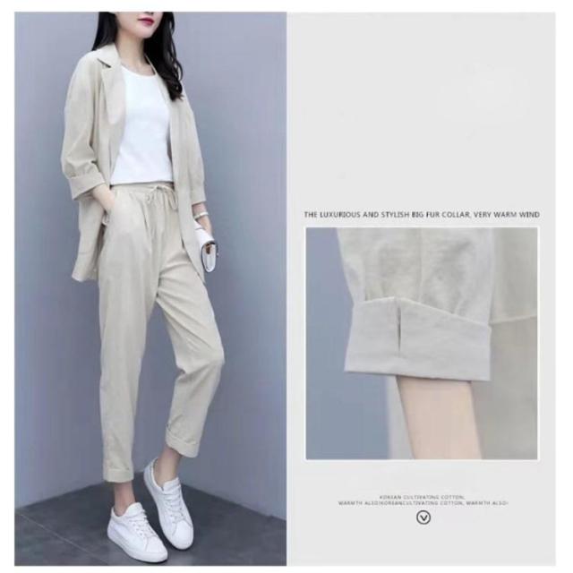 カジュアルスーツ レディース ライトジャケット ズボン セットアップ 上下 2点セット おしゃれ フォーマル OL 通勤 七分袖ジャケット 着?せ 体型カバー 大きいサイズ 無地イージーパンツ 9分丈パンツ 薄手 春秋 夏 キレイめ シンプル おしゃれ ギフト 送料無料