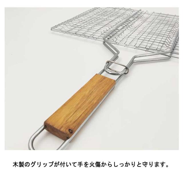 焼き網 挟み はさみ焼き網 合わせ焼き網 バーベキュー網 バーベキュー 魚焼き器 BBQ 魚焼き 網 ガス火専用 アウトドア 両面焼き 挟み焼き 焼き鳥 焼肉 挟み焼き 調理器具 食器 鉄 木製 持ち手 イカ焼き シーフード ステーキ キャンプ用品 選べる2サイズ ギフト 送料無料
