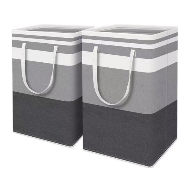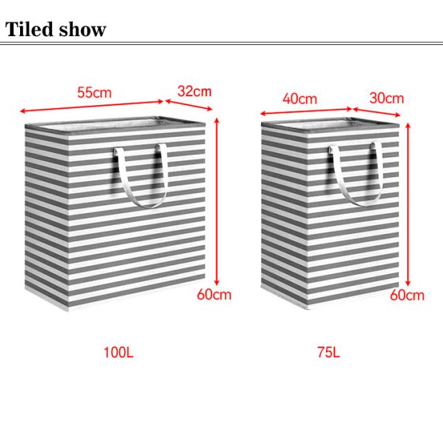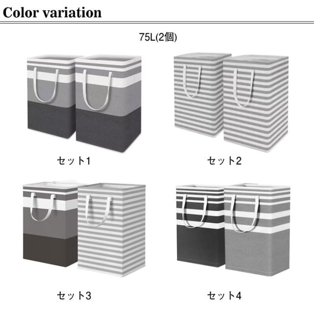 | 【2個セット】【75L・100L】【ランドリーバスケット】【折りたたみ】 折りたたみ可能でスリムに収納もできるランドリーバスケット。おしゃれな見た目ながら、大容量で軽い実用的な洗濯かごです。 【ポイント】 生地がしっかりで、自立します。口が大きくて入れやすい。 たっぷりモノが入る、大容量約75・100リットルの抜群な収納力。 内側には水をはじく撥水コーティング加工を施しているので、濡れたタオルもご安心。 容量が大きく、洗濯カゴとして家族全員分の洗濯物が入れます。 ぬいぐるみや洋服などの置き場にし、収納ボックスとして使えます。 取手が丈夫のため、運ぶカゴとして、洗濯機から物干までの移動が楽チン。 | |