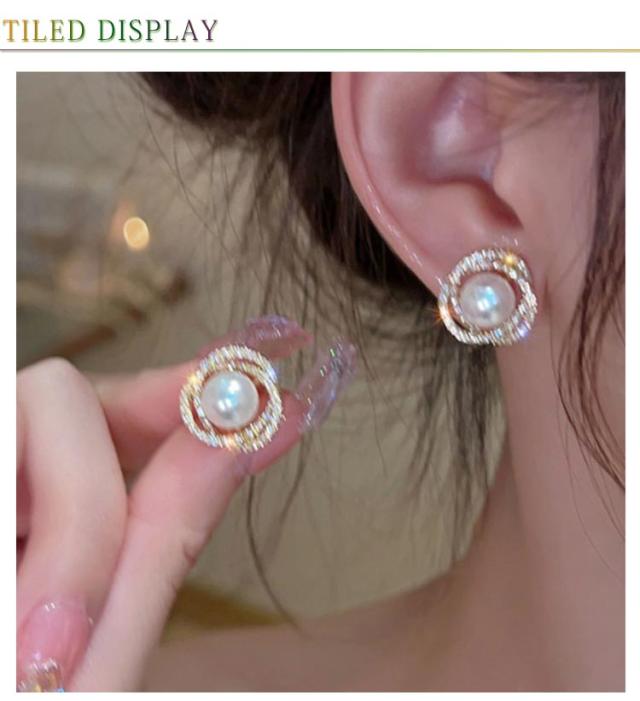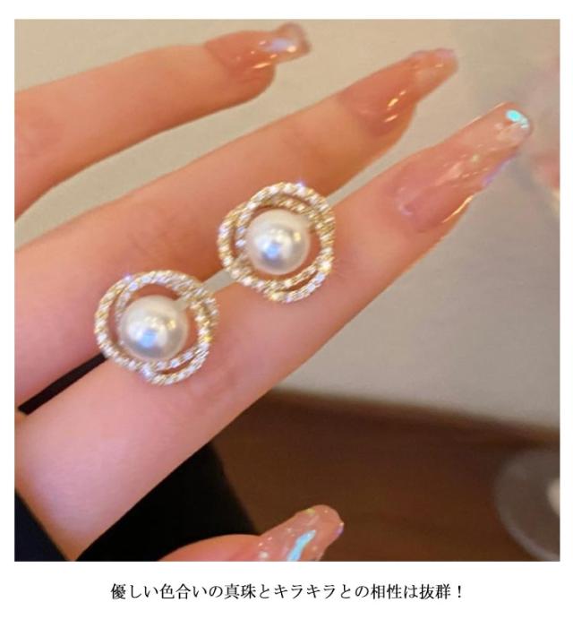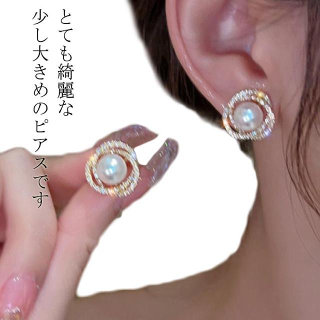 | とても綺麗な少し大きめのピアスです 優しい色合いの真珠とキラキラとの相性は抜群! フォーマルにもカジュアルにも定番の商品です。 | |