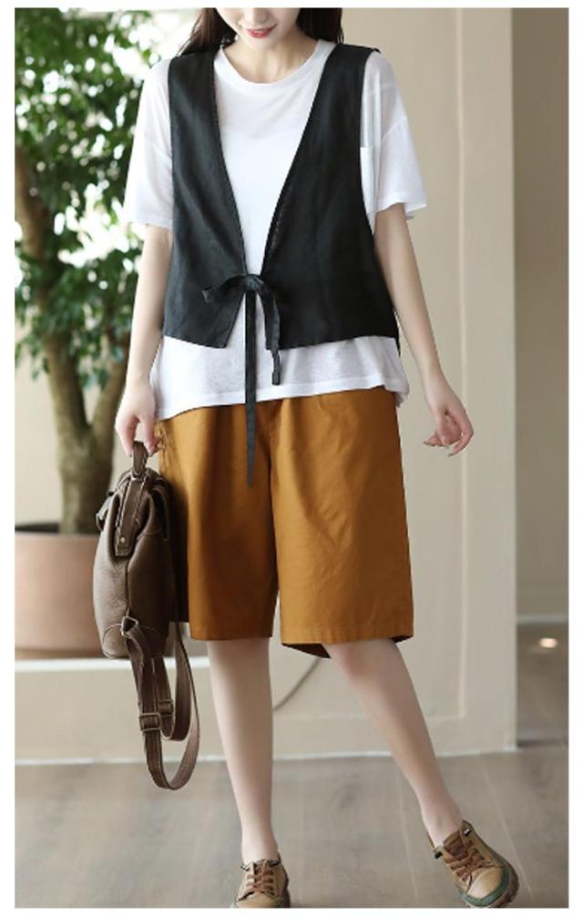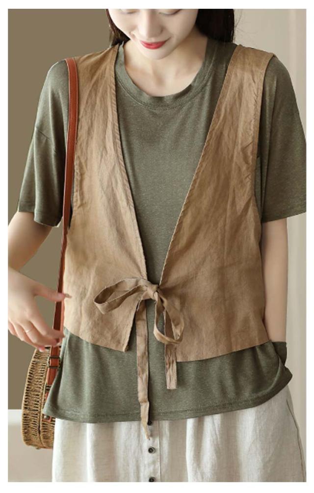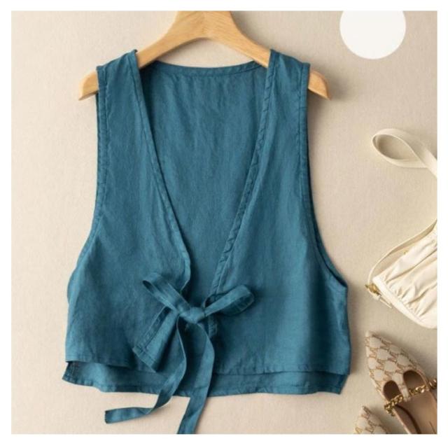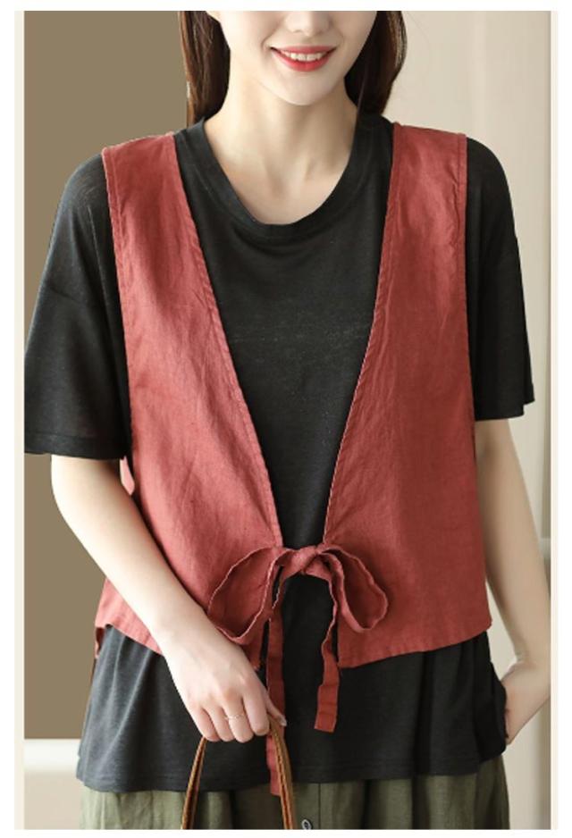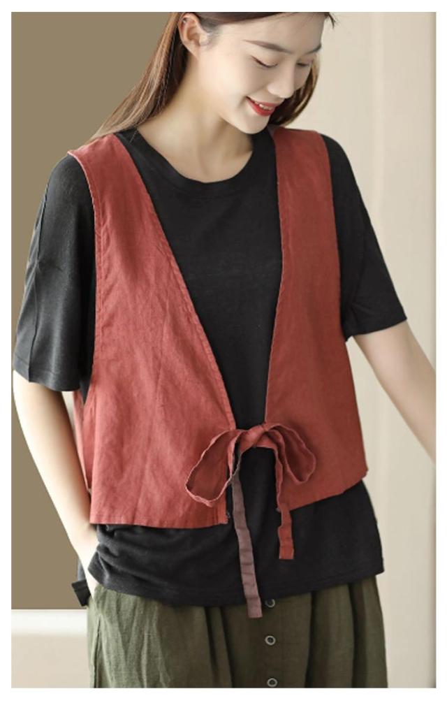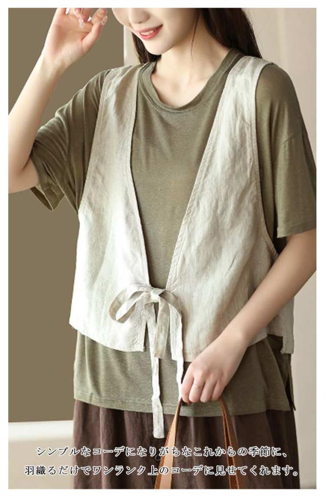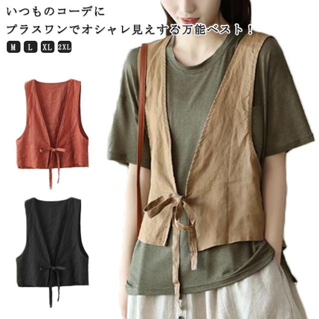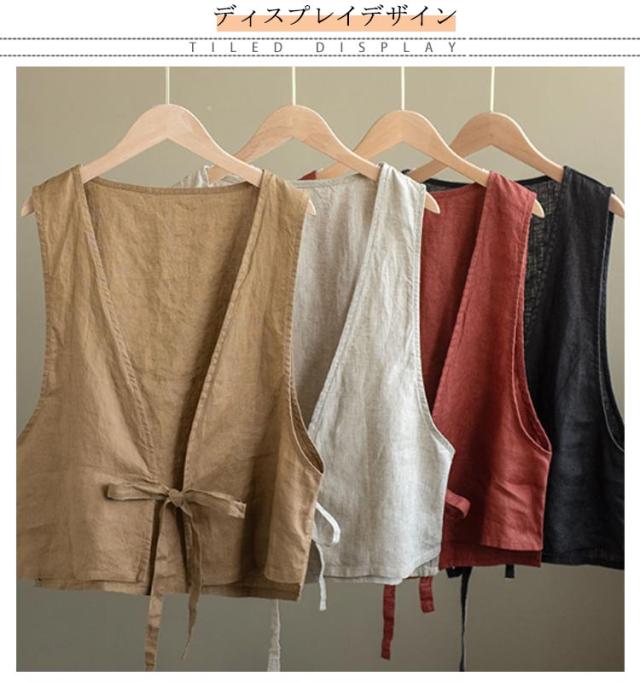 リネンベスト レディース ジレ 綿麻ベスト ノースリーブ Vネック リネン混 麻混 コットンリネン トップス ショート丈 薄手 前開きベスト トップス ゆったり ナチュラル 無地 大きいサイズ ノースリーブ 羽織り オフィス カジュアル 重ね着 通勤 OL 春 夏 秋 送料無料