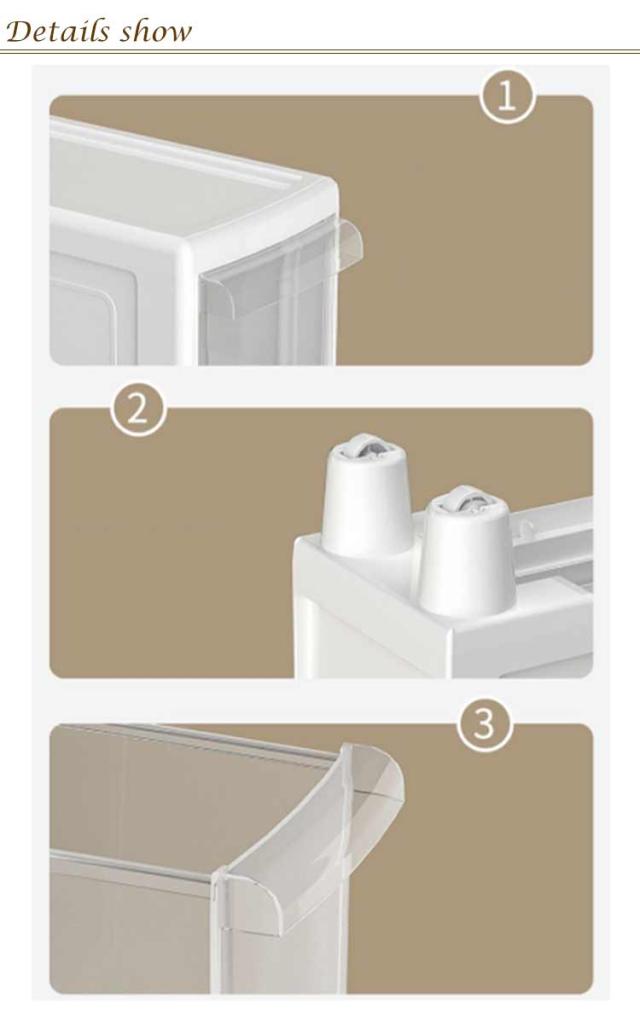 | 台所で使用の場合は食品や調味料など小さい物の整理に便利です。 スリムなのに驚きの収納力も魅力! サイド面はほこりや虫が入りにくい壁構造になっています。 組み立てが簡単、手間がかからず、一人でも簡単に完成できます。 引出しは抜け落ち防止ストッパー付で、本体後部にはコロ(簡易キャスター)が 付いていますので本体前面を持ち上げれば移動も簡単にできます。 | |