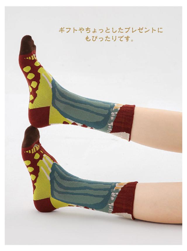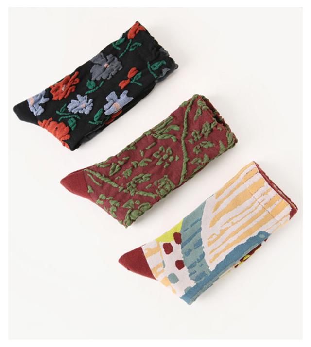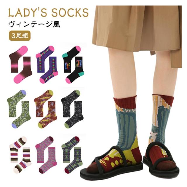 3足セット 靴下 北欧 タイダイ ソックス 秋色 フラワー 花柄 靴下 ミドル丈 チェック柄 靴下 スニーカーソックス クルー丈 クルーソックス レディース おしゃれ ソックス くつした ヴィンテージ風 靴下 送料無料