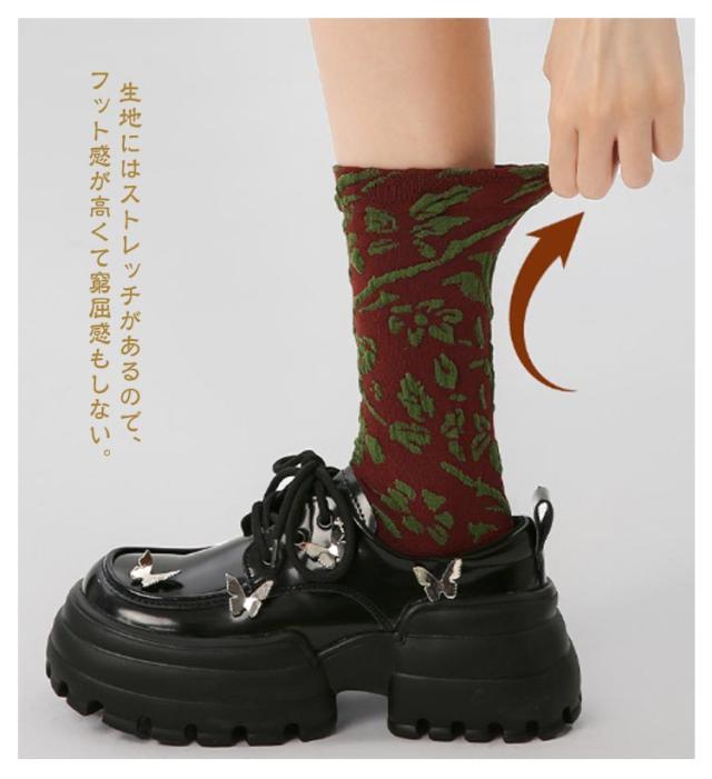 | 【商品名】レディース靴下 【サイズ】F 【素材】コットン ナイロン ポリウレタン 【特徴】秋色のカラーにフラワー柄が素敵なレディース用の靴下★ 吸湿性・通気性に優れたコットン混素材を使用、決して蒸れ感のしない快適な履き心地。 生地にはストレッチがあるので、フット感が高くて窮屈感もしない。 サンダルに合わせてもスニーカーに合わせてもとにかくカワイイ! ギフトやちょっとしたプレゼントにもぴったりです。 | |