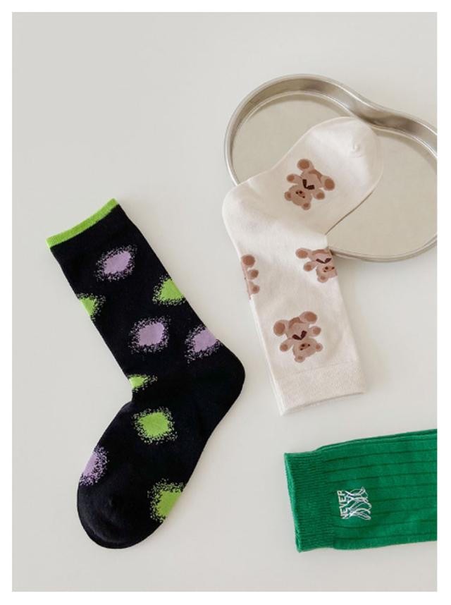 クマ くまさん 靴下 ミドル丈 秋色 靴下 3足セット レディース 靴下 北欧 ソックス おしゃれ ソックス くつした ヴィンテージ風 靴下 スニーカーソックス クルー丈 クルーソックス レトロ 靴下 ソックス 夏用 靴下 ソックス 秋用 女性用 レディース靴下 送料無料
