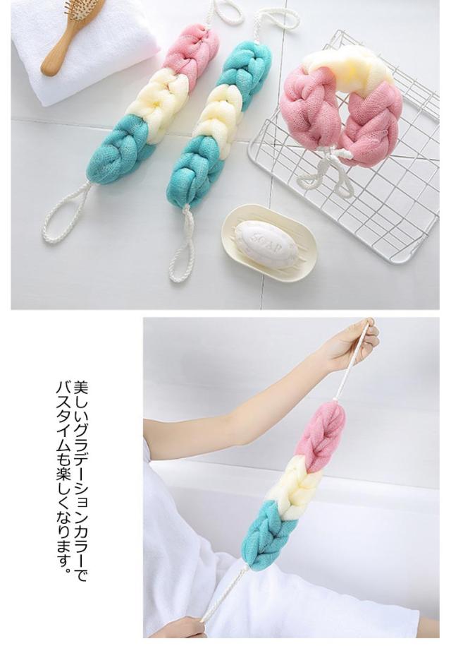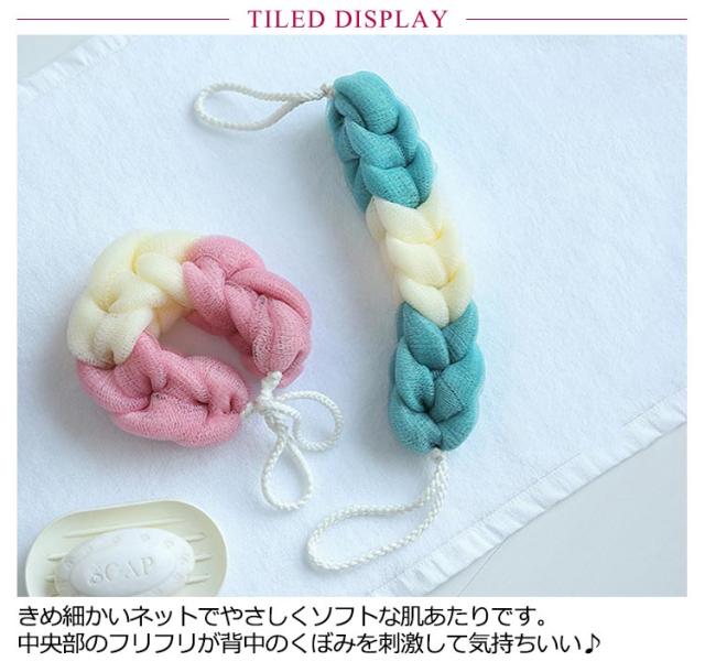 | ぐーんと伸びるので、従来のシャボンボールでは洗いにくかった背中も洗える、シャボンボールです。 両端のヒモを持って背中をゴシゴシ洗えます。片手でも持ちやすい大きさで扱いやすく、崩れにくいスッキリしたフォルムです。 きめ細かいネットでやさしくソフトな肌あたりです。中央部のフリフリが背中のくぼみを刺激して気持ちいい♪ 少ない石けんでモコモコ泡立つのでとってもエコ!泡で洗う派の人におすすめ♪ 美しいグラデーションカラーでバスタイムも楽しくなります。 | |
