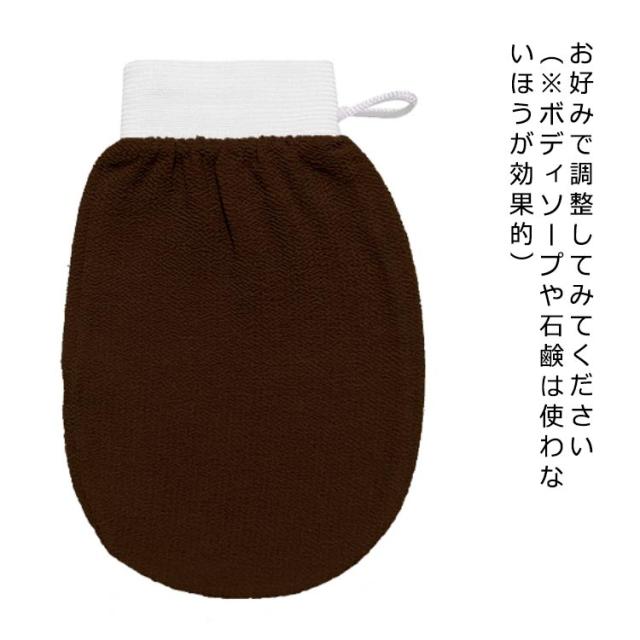 | 溜まった垢がポロポロ落ちるあかすり。 表面に大小凹凸があるビスコース繊維が、水により伸縮するため、大きい垢から小さい垢までごっそり絡め取ります。 まるで赤ちゃん肌のようなスベスベ感になる効果が期待できます! 【使用方法】 湯船に約15分ほど浸かり、軽く体を拭き、あかすりで力を入れずに優しく身体をこすってください。 水を吸わせることで触り心地の強さを変えることができるため、 お好みで調整してみてください(※ボディソープや石鹸は使わないほうが効果的) | |