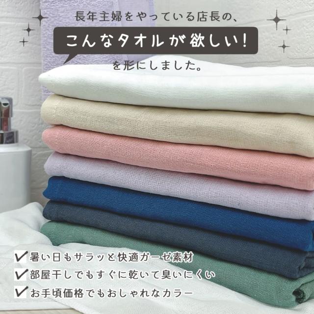 | 軽くて柔らかな肌触りと吸水性に優れたガーゼのバスタオル |
