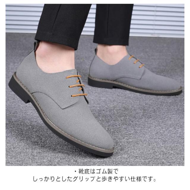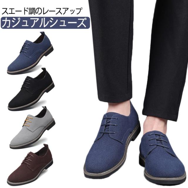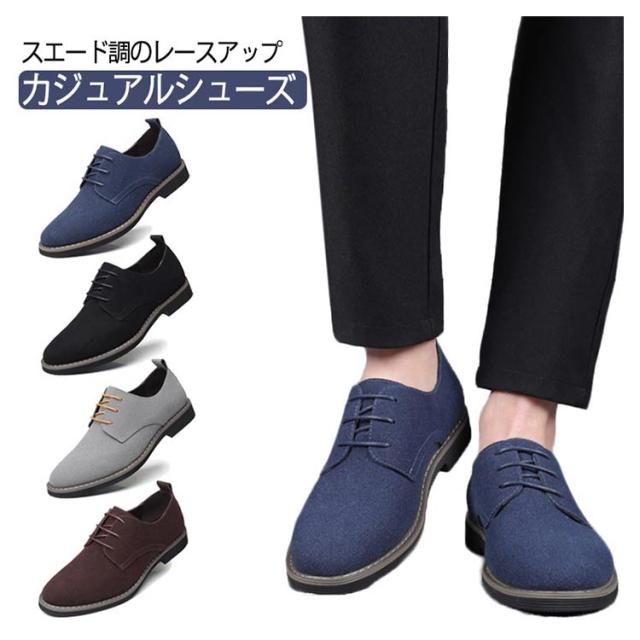レースアップ メンズ シューズ スエードシューズ 紳士靴 歩きやすい カジュアルシューズ 軽量 レースアップ ローカット スエード調 プレーントゥ スラックスに合う靴