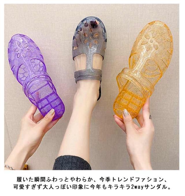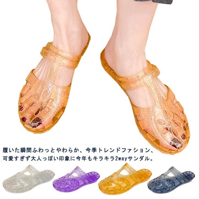 | 履いた瞬間ふわっとやわらか、今季トレンドファション、可愛すぎず大人っぽい印象に今年もキラキラ2wayサンダル。 子どもの送り迎えなどで忙しいママにもおすすめです! カジュアルからキレイめコーディネートまで幅広く使えます。 ラメ入り、爪先からかかとまで柔らかい素材を使用しているので足を優しく包み込んでくれます! 滑りにくい、歩きやすく、長時間履いても疲れにくいです。 ささっと履けて、コンビニなどちょっとお出かけのシーズンでもすぐにキマる。 海やプールに出かけた時にビーチサンダルとしてもオススメ! | |