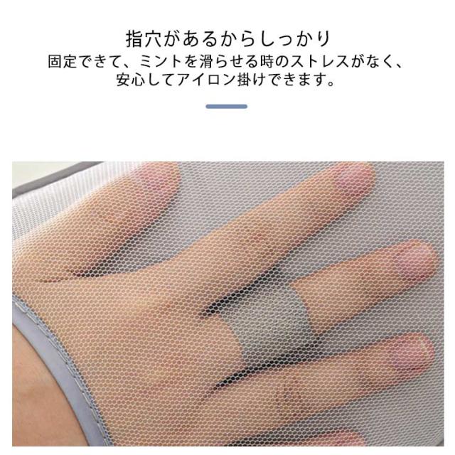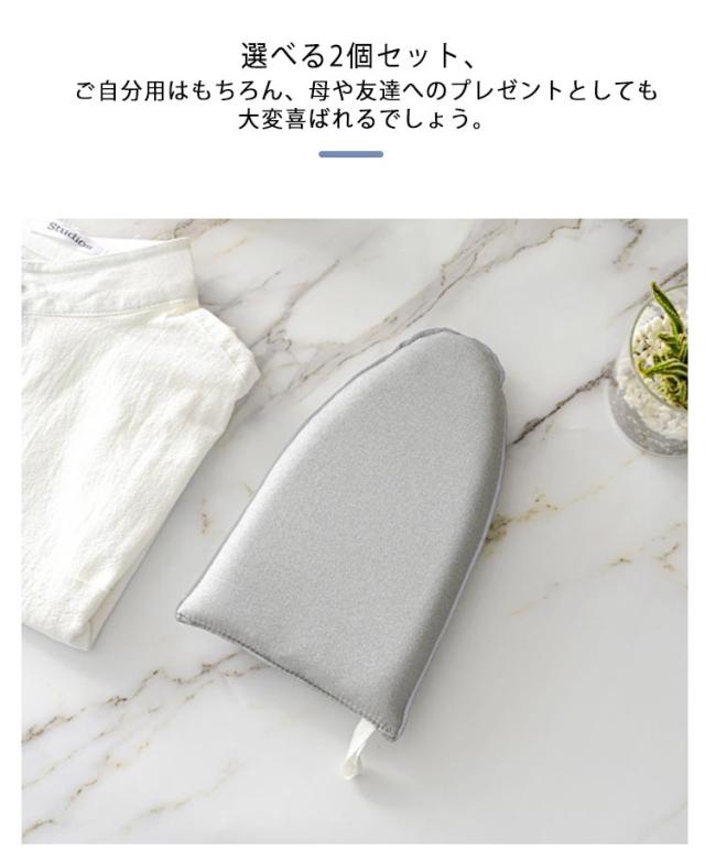 | 衣類をかけたまま簡単にしわ伸ばし♪時間短縮に。 アイロン台なしでプレスもでき、襟やリボンの細かい部分、服の端やスカートの裾などもしっかりシワ伸ばしできます。 高品質耐熱スポンジが内蔵、水と蒸気を遮断し、使いやすく手触りが良い。さまざまな生地のアイロンがけに適しています。 手首までしっかりガードするロングタイプで、手にしっかりフィットして安心。 指穴があるからしっかり固定できて、ミントを滑らせる時のストレスがなく、安心してアイロン掛けできます。 表は撥水加工が施され、汚れにくく、洗濯やお手入れ簡単! コンパクトなサイズ感で、収納時も困らない♪クローゼットやフックに吊るして保管できます。 選べる2個セット、ご自分用はもちろん、母や友達へのプレゼントとしても大変喜ばれるでしょう。 | |