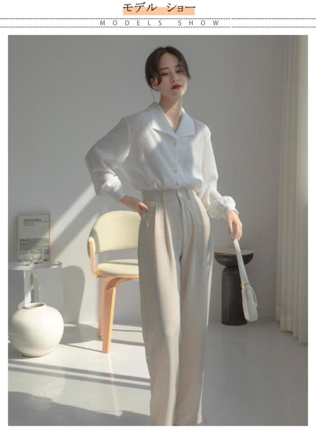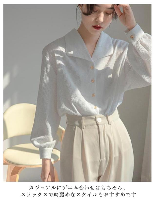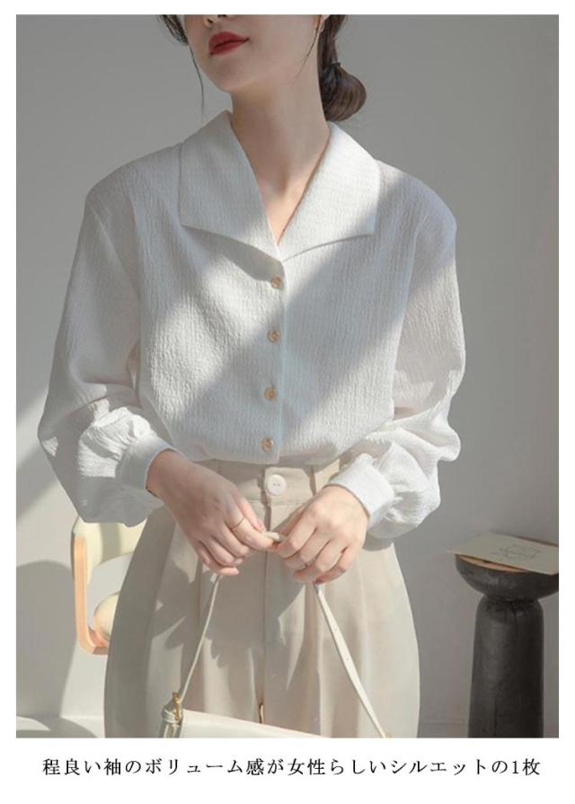 シャツ ブラウス レディース 開襟シャツ ボリューム袖 長袖シャツ バルーン袖 バルーンスリーブ トップス 大きいサイズ ゆったり ブラウス 無地 体型カバー 表面感 上品 大人可愛い きれいめ オフィス カジュアル フォーマル 通勤 春 夏 秋 秋服 オールシーズン 送料無料