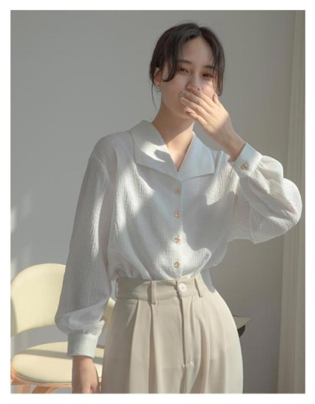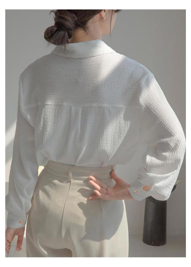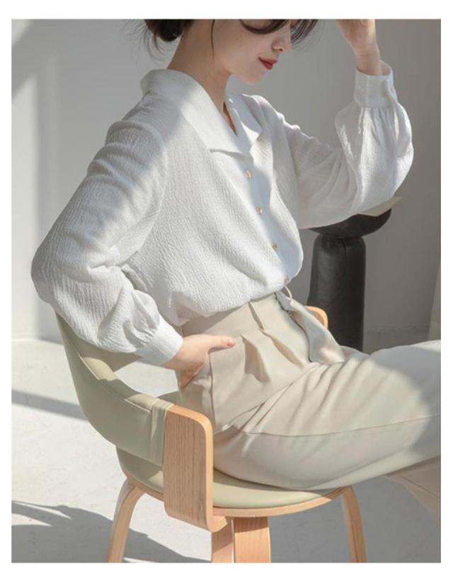 | 表面感のある素材がトレンド感漂うブラウス。 程良い袖のボリューム感が女性らしいシルエットの1枚 大きめの襟で小顔効果も期待できるんです♪ カジュアルにデニム合わせはもちろん、スラックスで綺麗めなスタイルもおすすめです | |