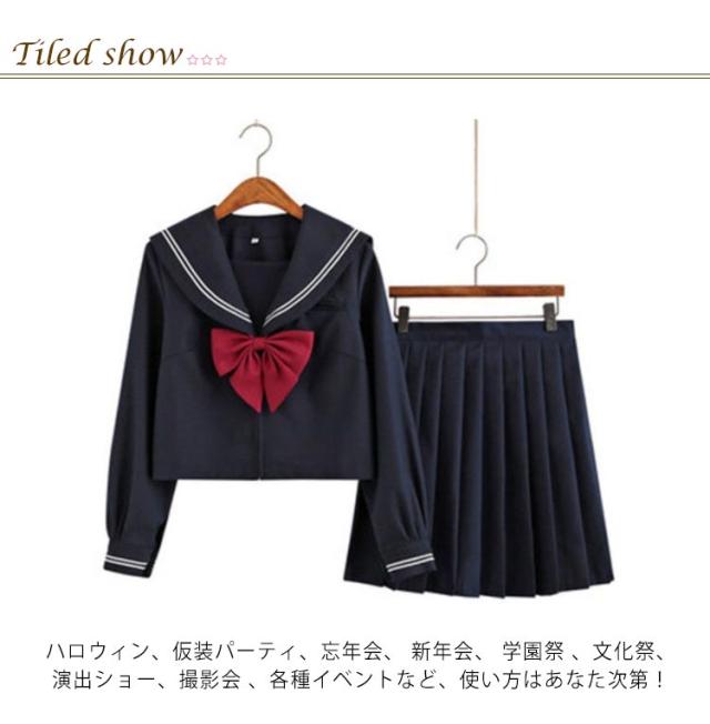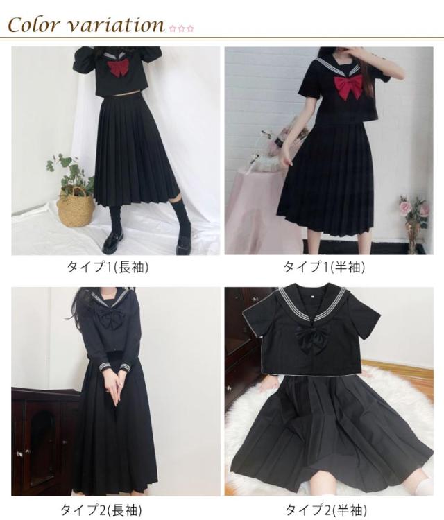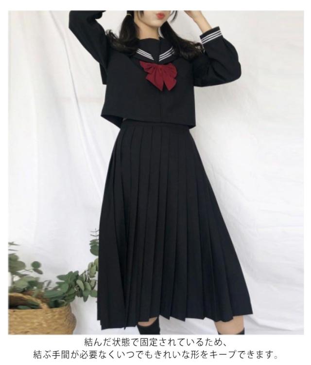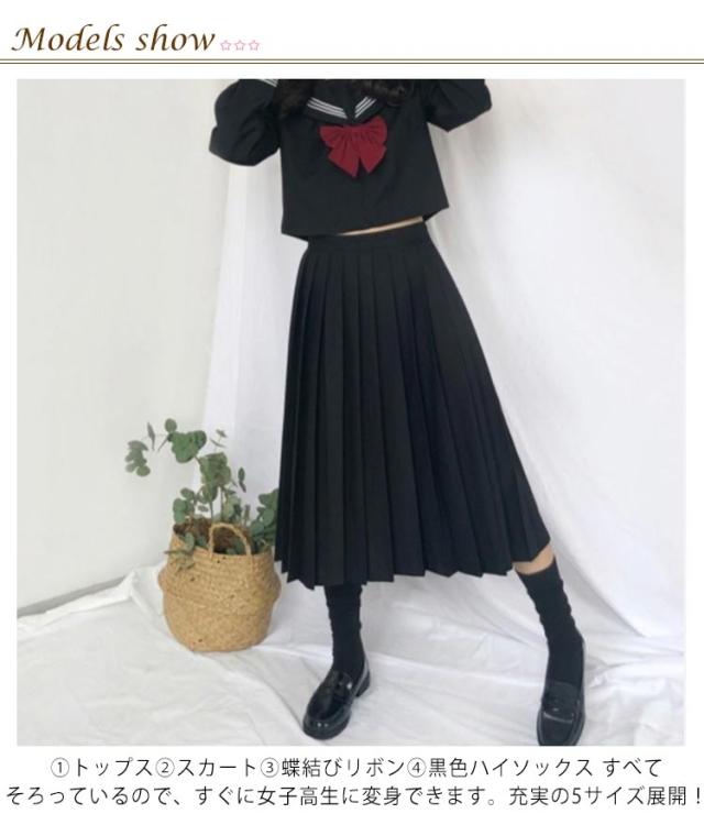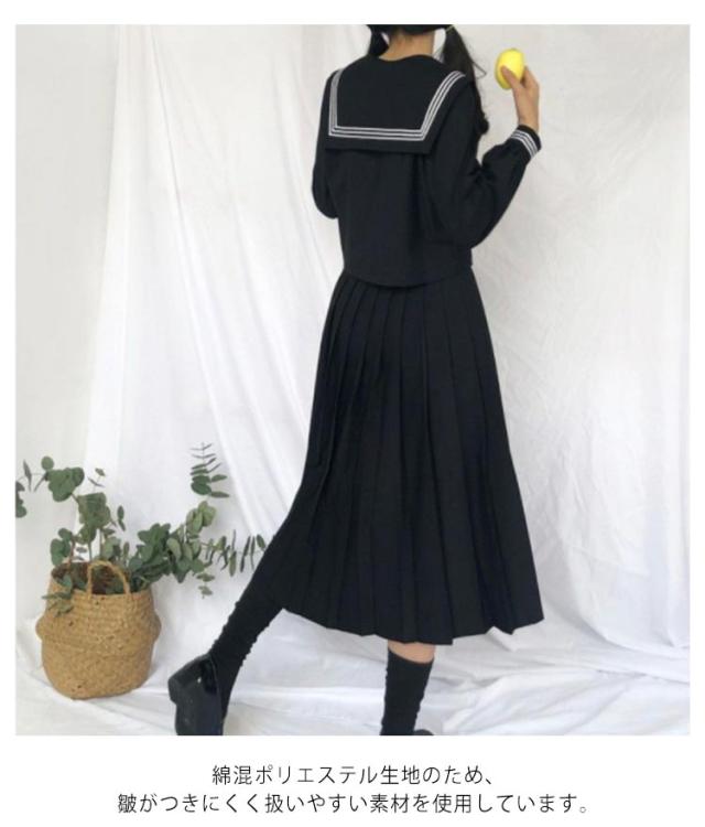 セーラー服 学生服 コスプレ 女子高校生 制服 3点セット かわいい 長袖 半袖 シャツ ロング スカート リボン 上下セット 無地 ブラック 黒 JK制服 女子高生 女子 高校生 学園祭 文化祭 レディース コスチューム衣装 衣装 仮装 可愛い 【送料無料】