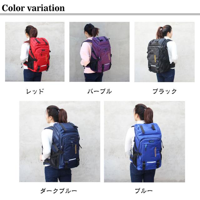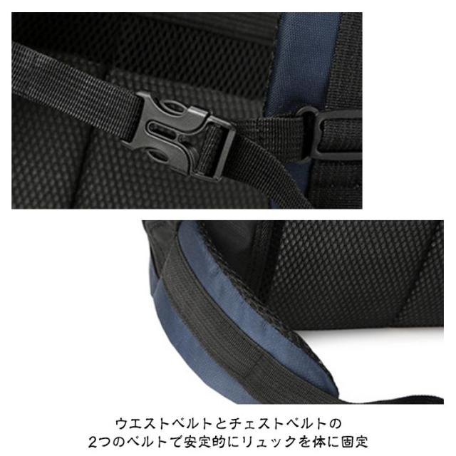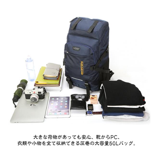 | 【7color】【撥水加工】【50L大容量】【リュックサック】 大きな荷物があっても安心、靴からPC、衣類や小物を全て収納できる圧巻の大容量50Lバッグ。 ウエストベルトとチェストベルトの2つのベルトで安定的にリュックを体に固定 補強したショルダーストラップで耐荷重性能が高く耐久性があり重い荷物をもってもほつれや破れに強くなっています。 背面にはメッシュ素材の通気クッションを採用。通気性が良く、汗などの水分を速やかに吸収・拡散させ、快適な使用感を実現します。 撥水加工がされた防水のリュックサック多少の雨であれば水を弾く撥水性。 アウトドアや登山、旅行用だけでなく、通勤通学などにも使える大容量リュックです! | |