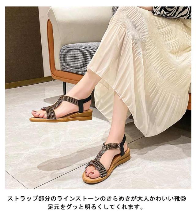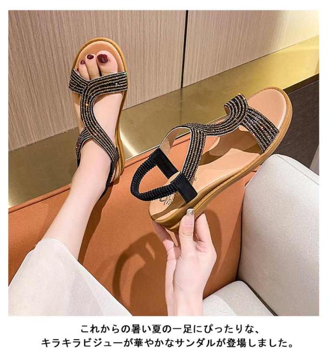 サンダル ヒール高さ4cm 軽量 ローヒール 厚底 レディース ぺたんこ ぺたんこ ストラップサンダル スニーカーサンダル スポーツサンダル 滑りにくい キラキラ 夏 ビーチサンダル 美脚 ビーチ 通勤 歩きやすい