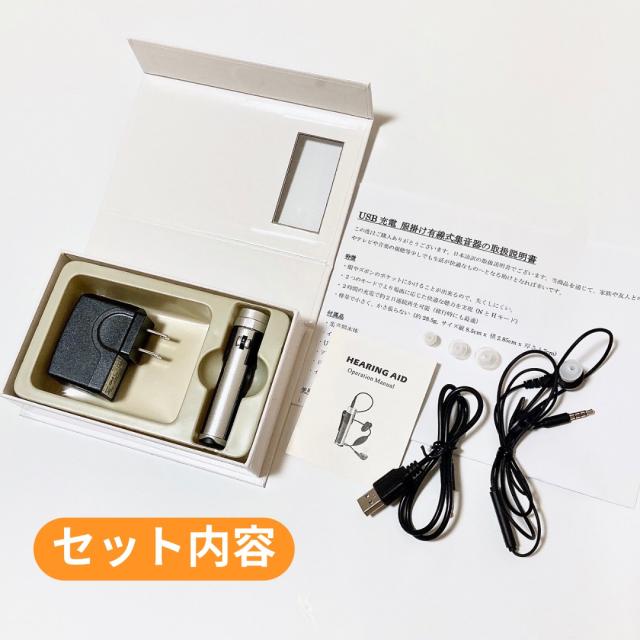 集音器 USB充電 ポケット型 左右両用 充電式 目立たない 小型 軽量 ケース付き ケーブル付き 集音機 助聴器 遠聴器 会話 テレビ 簡単操作 両耳対応 使いやすい 服掛け シルバー 両親 祖母 祖父 快適 音量調整機能 勤労感謝 敬老の日 父 母 Luce brillare ルスブリラーレ