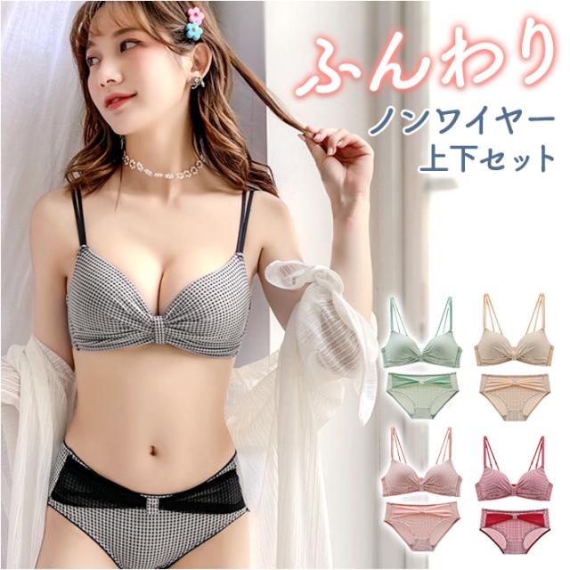 ブラジャー ショーツ セット ファーストブラ 通販 ブラショーツ ブラセット ブラショーツセット ナイトブラ ノンワイヤーブラ ブラ ギンガムチェック 上下 セット 上下セット