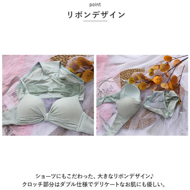 ブラジャー ショーツ セット ファーストブラ 通販 ブラショーツ ブラセット ブラショーツセット ナイトブラ ノンワイヤーブラ ブラ ギンガムチェック 上下 セット 上下セット