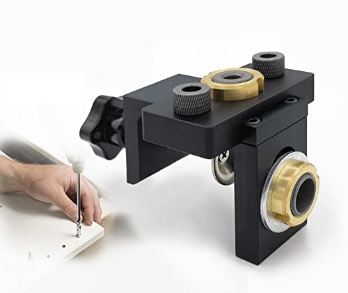 高精度木工用 3in1多機能ドリルガイドで、偏心ナット、ボルト、埋め込みナットのドリルガイドが可能です。ダボ穴あける作業を効率向上のために設計され、面難しい木ダボの穴あけ作業が驚くほど簡単に、正確に出来る便利な道具です、大量のダボドリル作業に向きます。