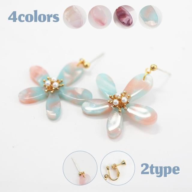 ピアス イヤリング フラワー 花 レディース 女 アクセサリー スタッドピアス マーブルカラー おしゃれ かわいい 揺れる