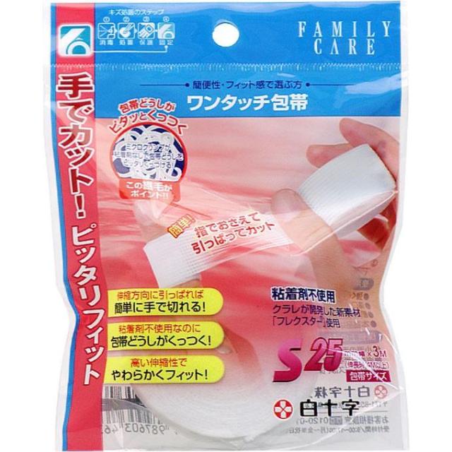 ファミリーケア(FC) ワンタッチ包帯 S(2.5cm*3m) 白十字 手でカット ぴったりフィット