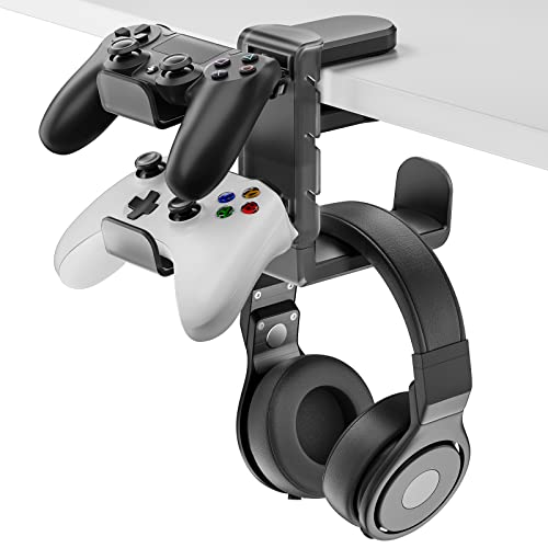 コントローラー/ヘッドホン スタンド 3台同時収納 省スペース ヘッドホンハンガー 360度回転式 ケーブル収納 安定性 滑り止め 幅