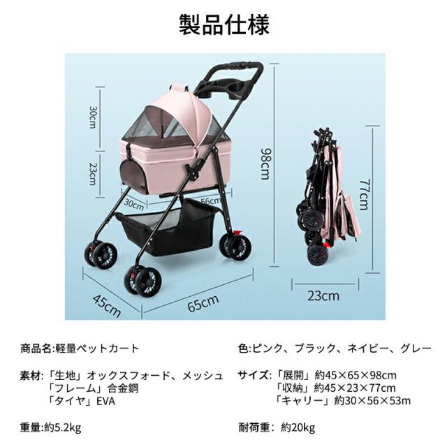 ペットカート ペットキャリー 分離式 バスケット 折り畳み簡単 収納 コンパクト 軽量 4輪 ブレーキ付き 散歩 お出かけ 旅行 介護通院 多頭 小型犬 中型犬 ペットバギー ドッグカート カート 犬 ドッグ 猫 いぬ ねこ ペット用品