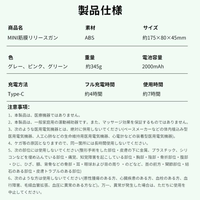 筋膜リリース ハンディガン 電動 軽量 マッサージ機 筋膜リリースガン MINI トータルボディケア 4種のアタッチメント付 軽量 ポータブル 小型 コンパクト 静音 筋肉 エクササイズ フィットネス コードレス 家事 仕事 職場 出張 旅行 トラベル 電動 振動ガン