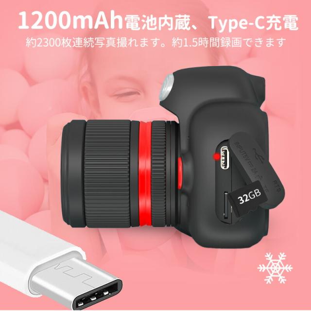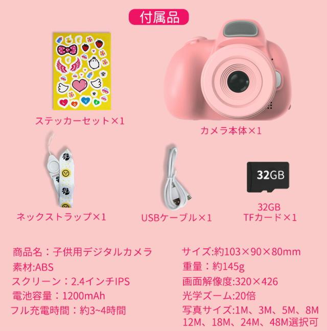 キッズカメラ トイカメラ 子供用デジタルカメラ 32GBTFカード付 4800万画素 1080p録画 自撮り オートフォーカス 20倍拡大 USB充電 知育玩具 女の子 男の子 誕生日プレゼント 小学生 子供 人気 おもちゃ かわいい