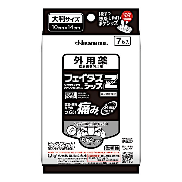 【第2類医薬品】久光製薬 フェイタスZジクサスシップF 7枚入 湿布 腰痛 肩こり 筋肉痛