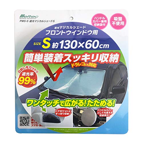 メルテック 車用 日よけ 遮光マジカルシェード フロント用 Sサイズ PMS-S 遮光率99%&UVカット コンパクト収納 収納袋付 ドラレコ対応 シルバー/ブラック W1300*H600mm