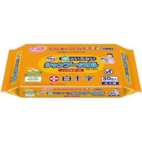白十字 サルバ 水のいらないシャンプータオル ノンアルコール 30枚 入浴関連 清拭タオル 頭清拭用