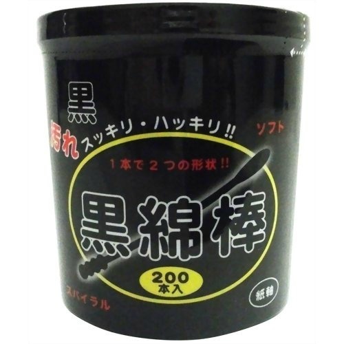 「黒綿棒 200本入」は、耳掃除やお化粧直しに便利なブラック綿棒です。お手入れ後の汚れが目でハッキリ見えます。ソフト&スパイラルの2つの形状で、お手入れしやすくなっています。お風呂上がりにお使いください。