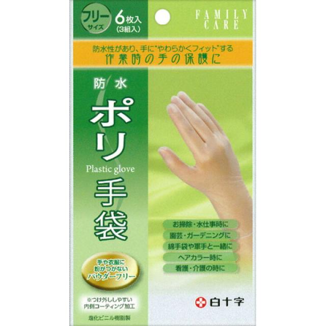 白十字 ファミリーケア FC ポリ手袋 パウダーフリー 6枚 (3組入) 防水ポリ手袋 フリーサイズ 粉無 ノンパウダー 左右共用
