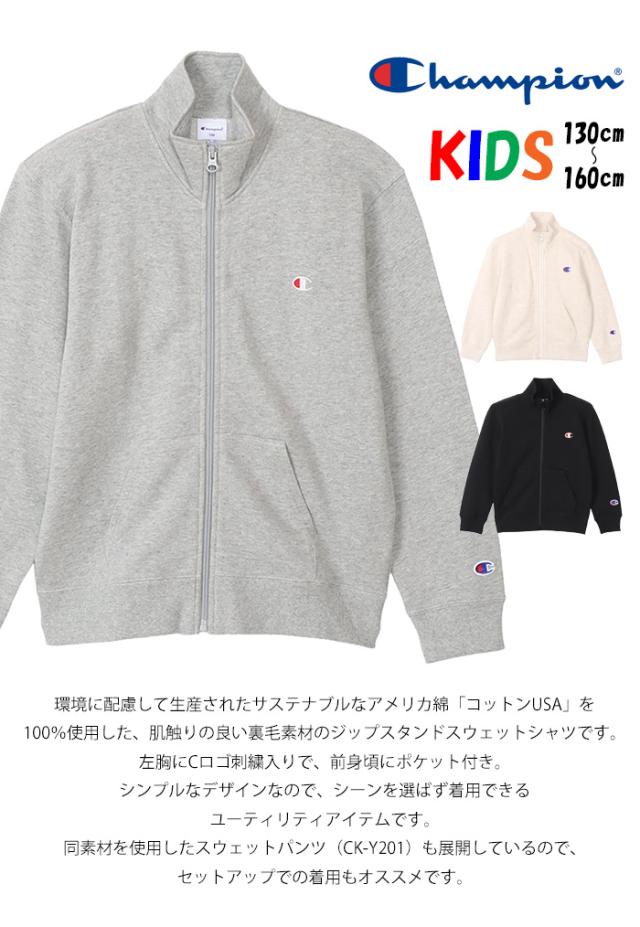 Champion チャンピオン キッズ ワンポイント スタンドジップジャケット 裏毛スウェット フードなし 男の子 女の子 子供服 ジュニア 130 140 150 160 送料無料 CK-Y003