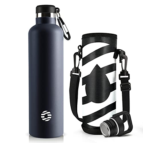 FJbottle 水筒 1リットル 真空断熱 保温 保冷 第2世代 ステンレスボトル 直飲み スポーツボトル スポーツ飲料対応 水筒カバー 洗浄用スポンジ付き 男の子 女の子 大人 子供 ブルー