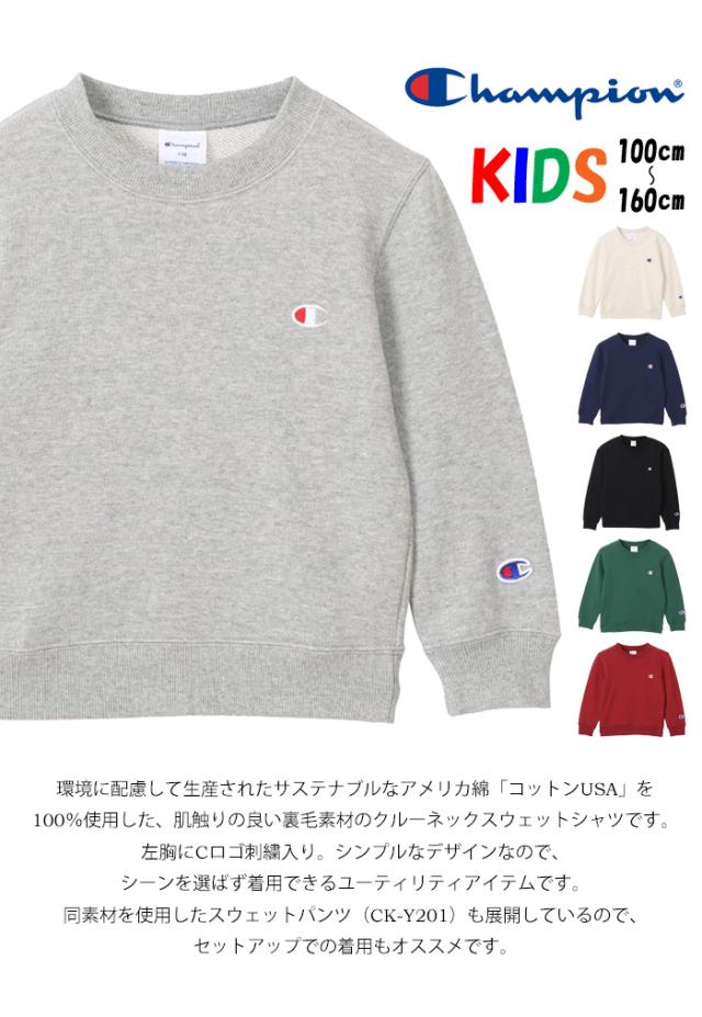 Champion チャンピオン キッズ ワンポイント スウェットシャツ トレーナー 裏毛 定番 男の子 女の子 子供服 ジュニア CK-Y001