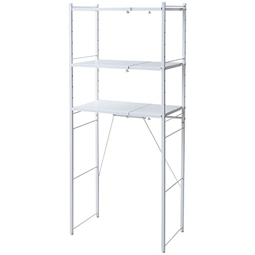 [山善] レンジラック ゴミ箱上ラック 【全体耐荷重90kg】 幅50-79.5*奥行42*高さ170cm 棚板高さ調節可能 棚板3枚 フック4個付き レンジ台 ラック 組立品 ホワイト RPE-3(WH)